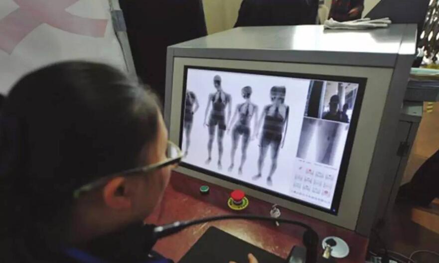 們知道現(xiàn)在飛機火車站,甚至地鐵公交,都要經(jīng)過安檢! 安檢機原理很簡單:利用X射線,可以在不打開包裹的前提下看清其內部結構。圖:一名美女過安檢,手中的包以及身上攜帶的東西都清晰可見。